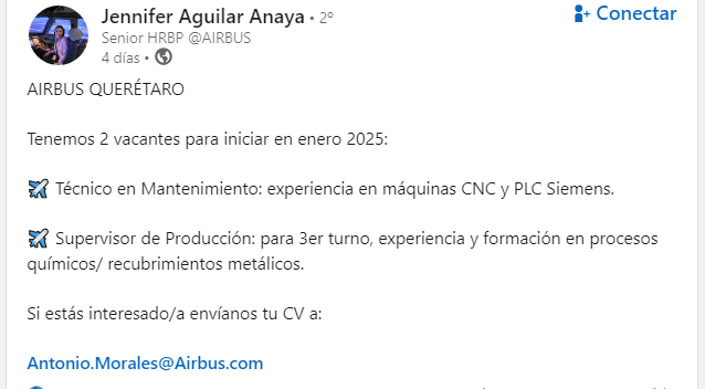 Jennifer Aguilar AnayaJennifer Aguilar Anaya • Senior HRBP @AIRBUSSenior HRBP @AIRBUS4 días • hace 4 díasConectarConectar con Jennifer Aguilar Anaya